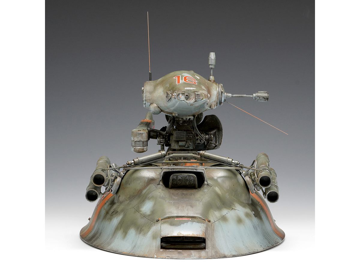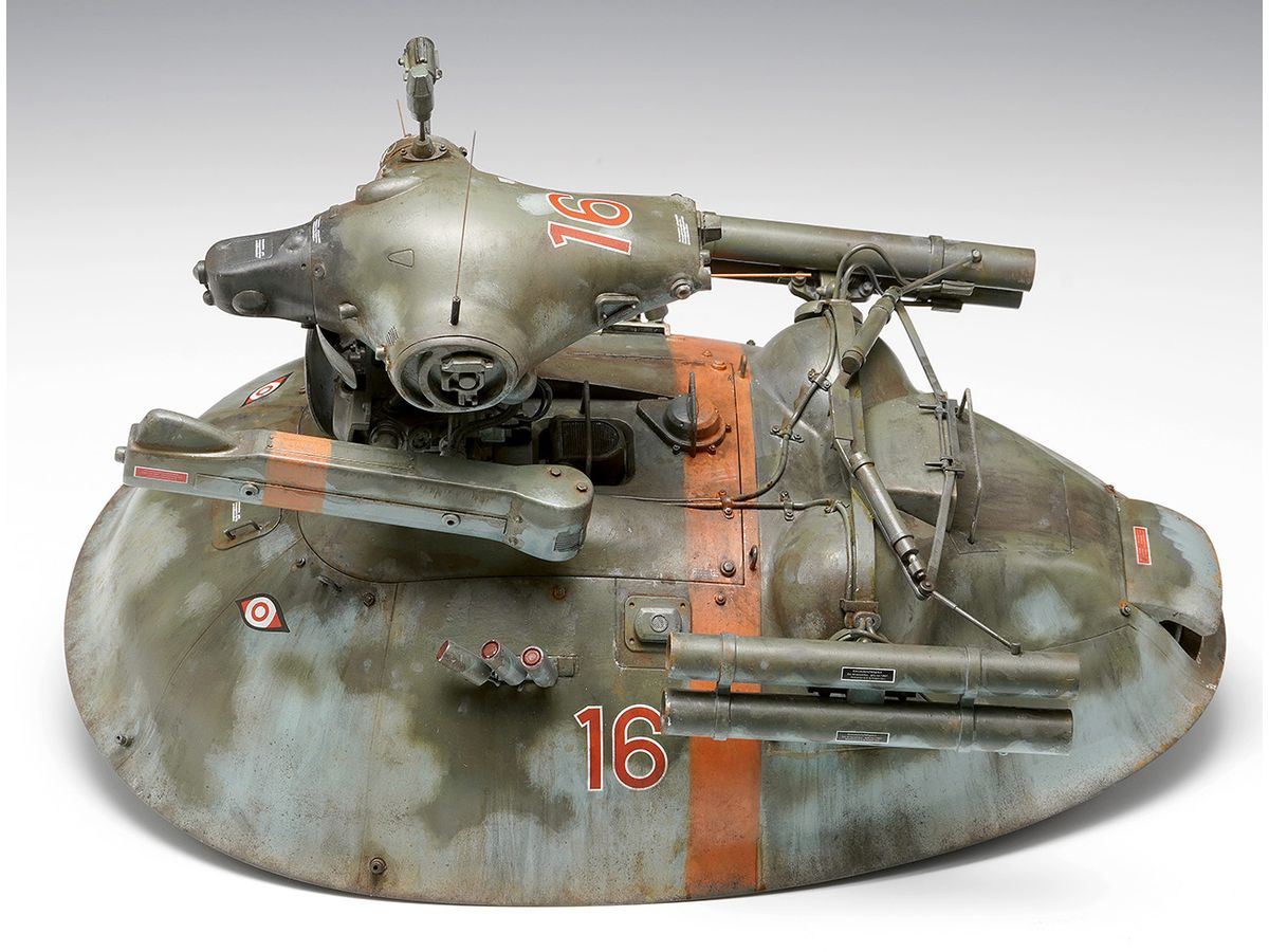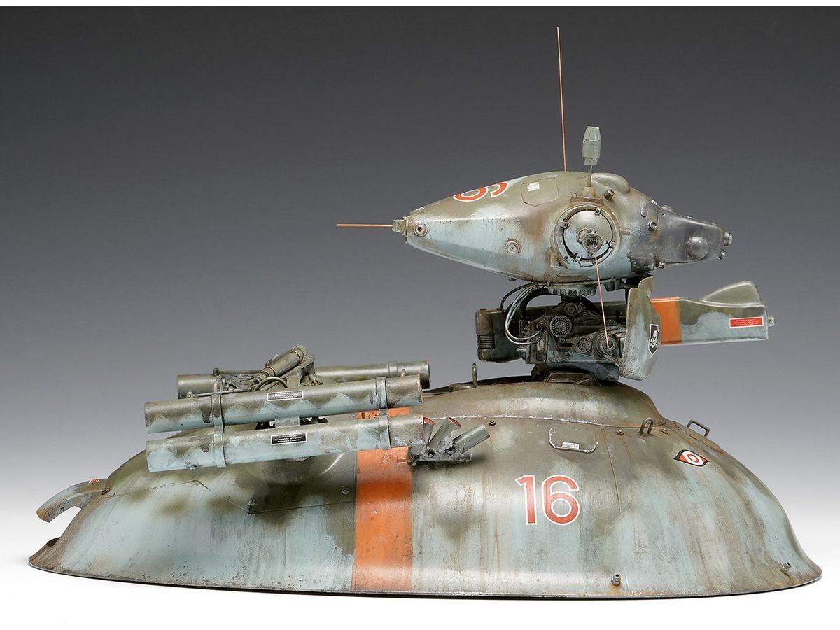 ホバー駆動の装甲車両に感知ユニットであるノイスポッター頭部を搭載した無人偵察機オスカル。