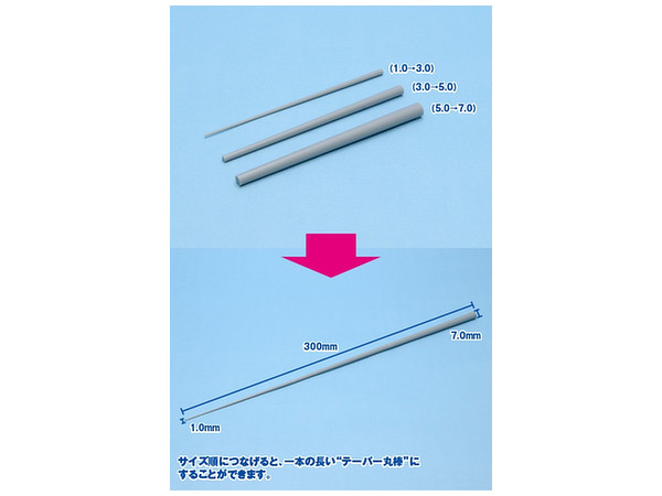 プラ=材料 (グレー) テーパー丸棒 3.0-5.0: 8本入
