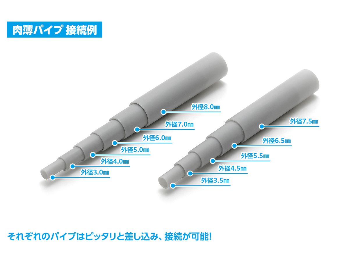 パイプ外径は使いやすいピッタリサイズ(3.0/3.5/4.0/4.5/5.0/5.5/6.0/6.5/7.0/7.5/8.0mm) としました。