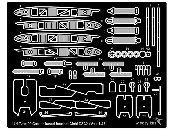 今回リリースされる商品は1/48スケールインジェクションキットとしては史上初となるキットです。キットにはエッチングパーツ、塗装マスクシールと4種デカール(空母隼鷹艦載機、空母翔鶴艦載機、宇佐航空隊、第701航空隊 x 各1)が付属しています。