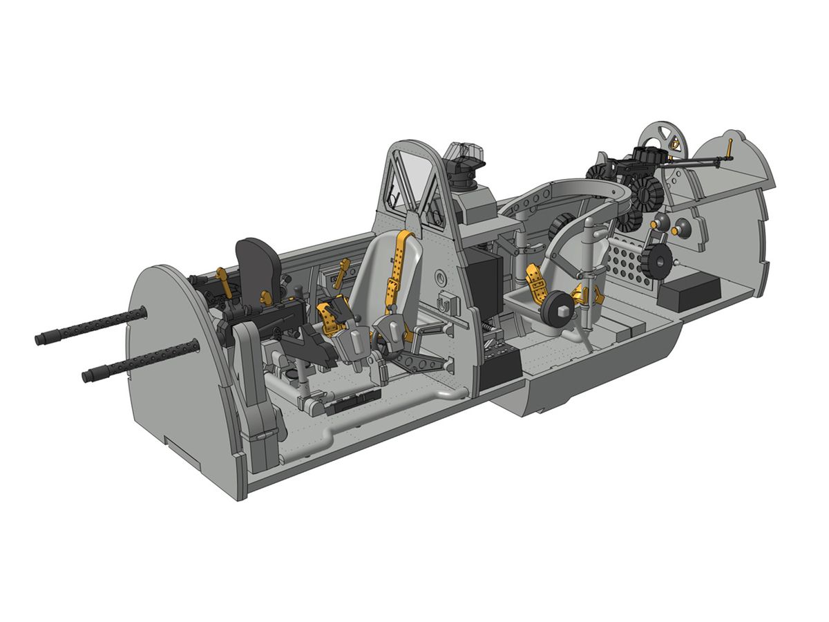ウィングジーキットの製品は機体表面のパネルラインやリベット跡は繊細に表現されていて大変素晴らしく、またコックピットとエンジンも細部に亘ってエッチングパーツを用いて緻密に表現されています。