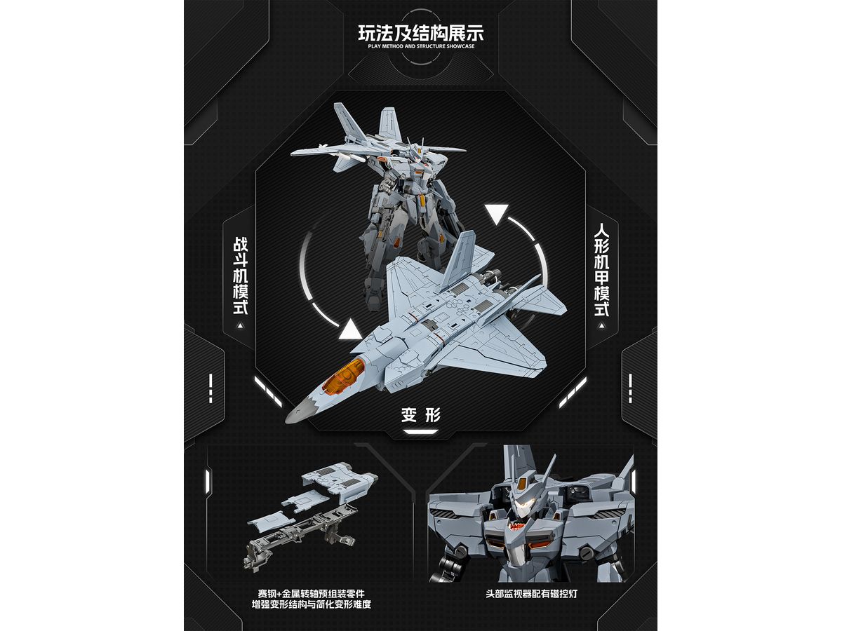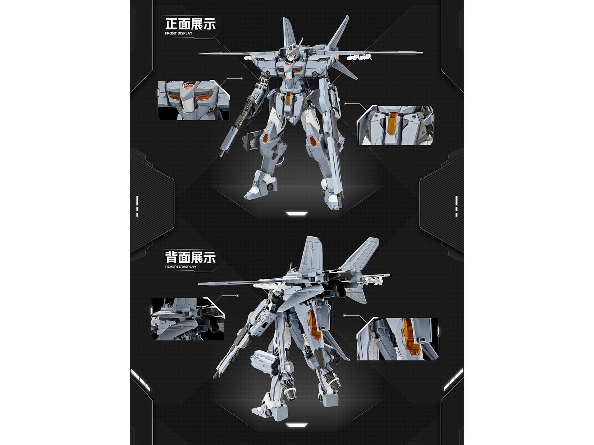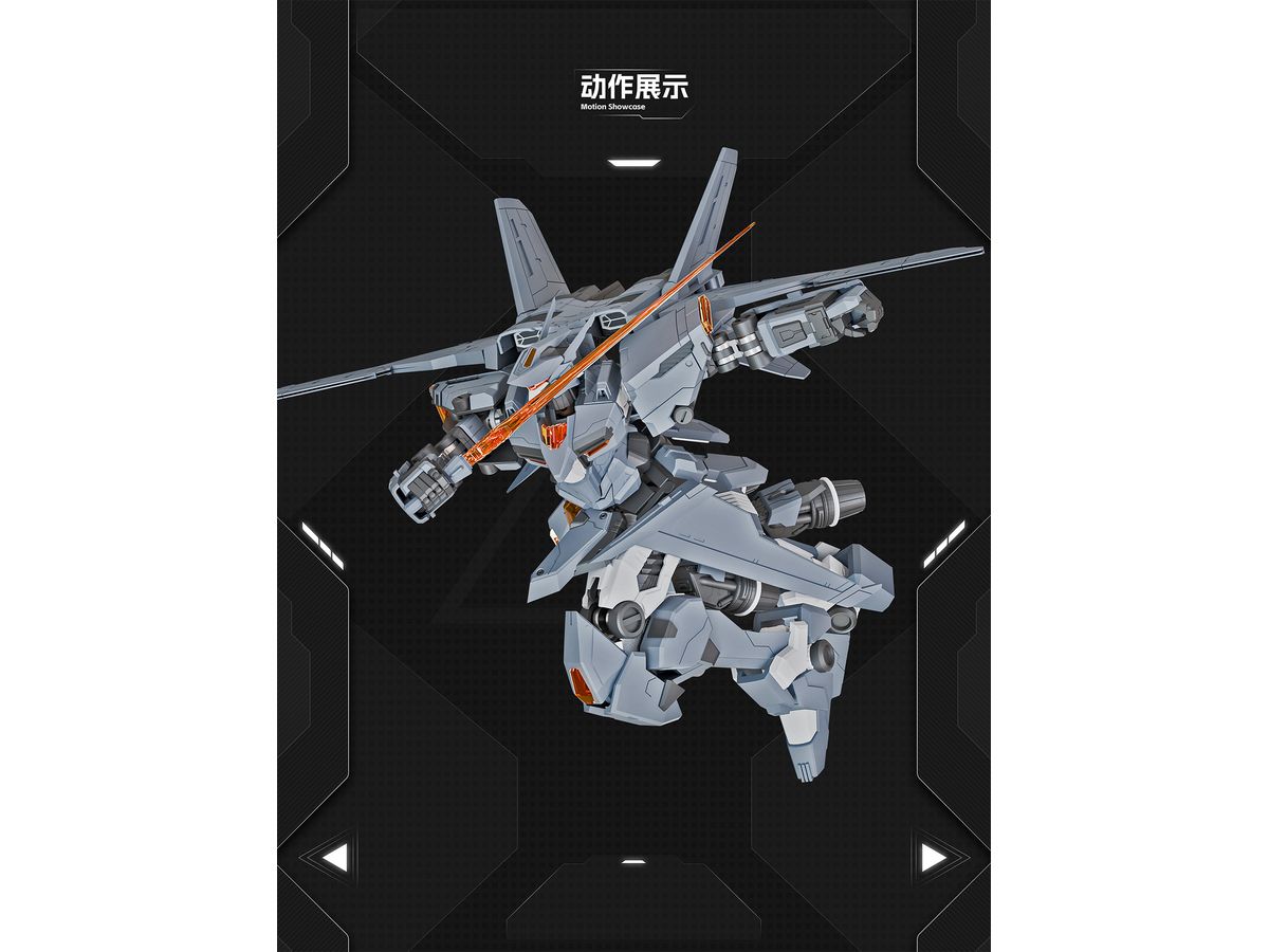 鋭い翼と重厚な装甲を持つ機体が、航空機からロボットへと完全変形!