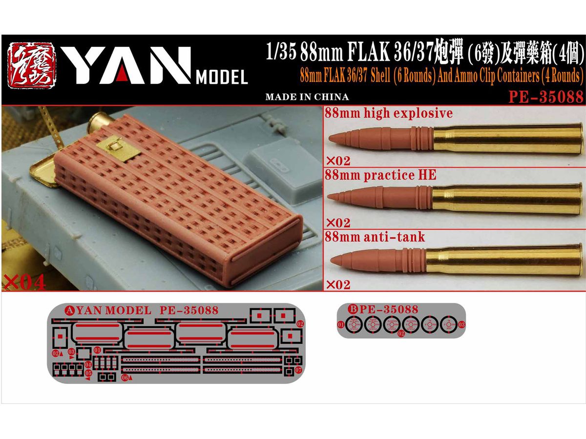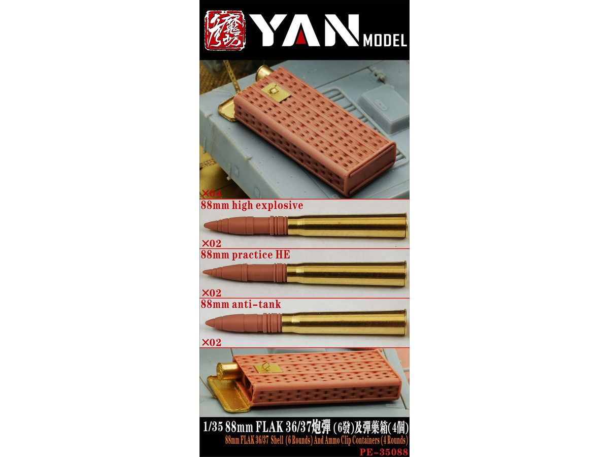 1/35 WW.II ドイツ軍 88mm 高射砲 Flak36/37 砲弾 & 弾薬箱 (砲弾3種 x 各2個、弾薬箱 x 4個入)