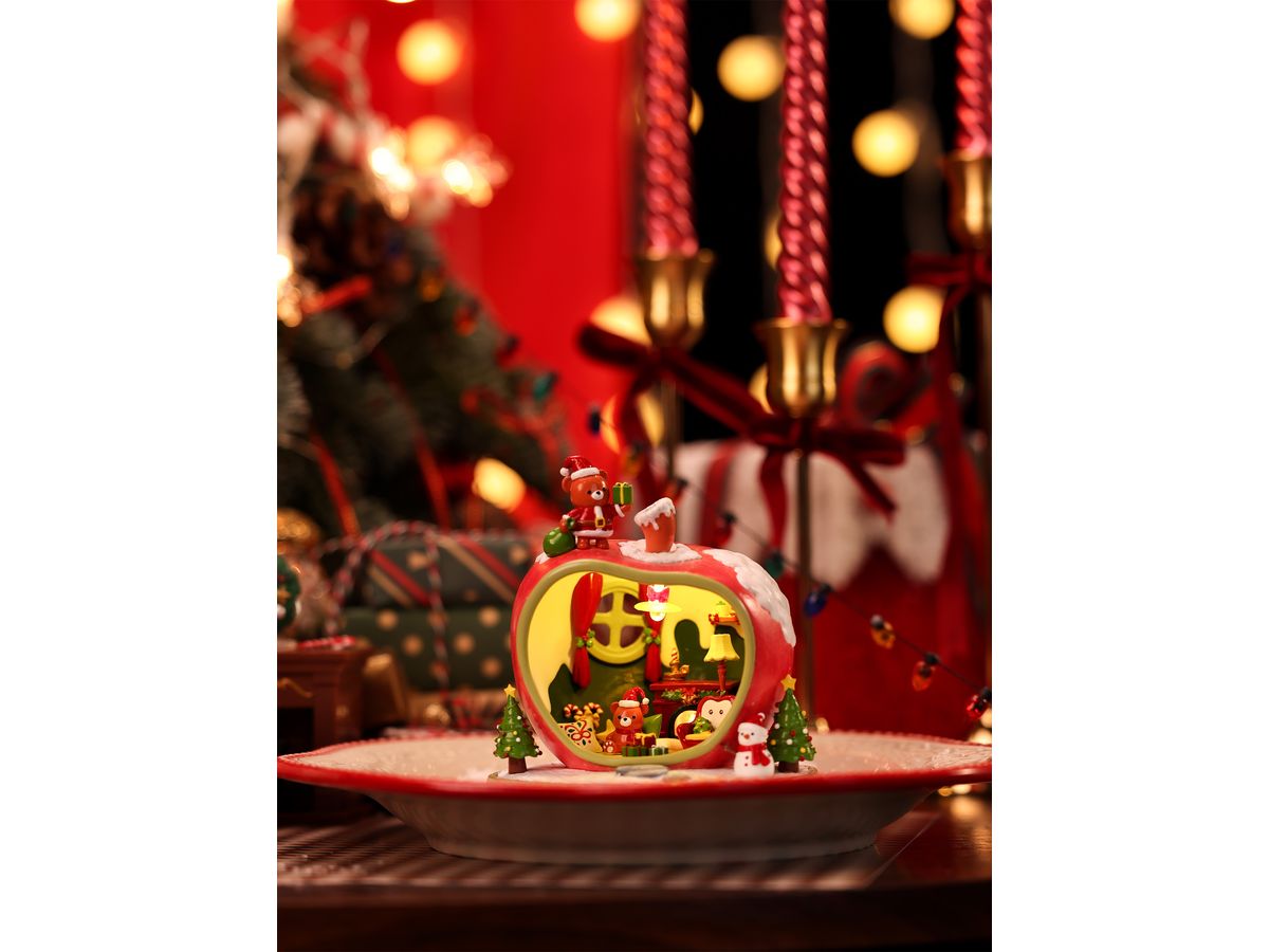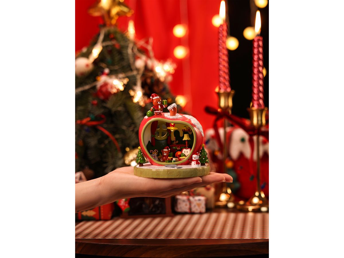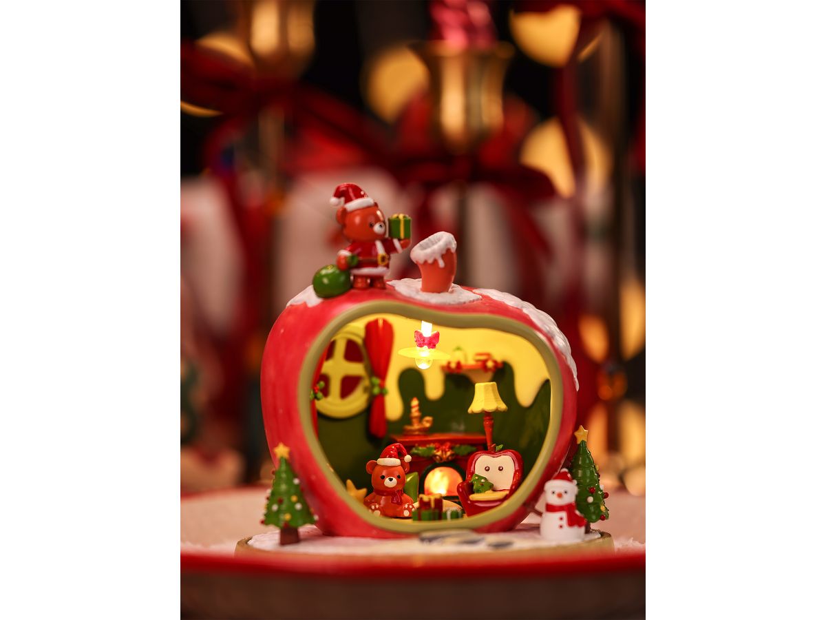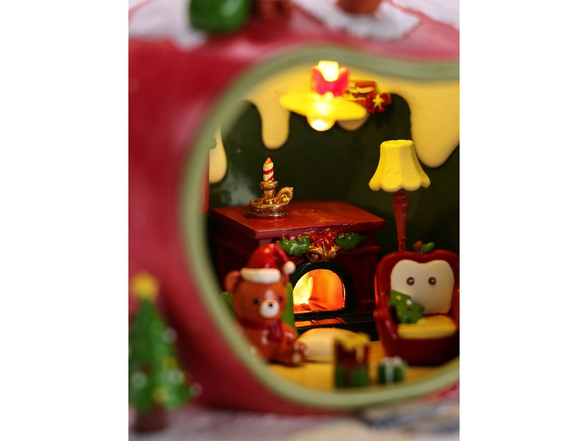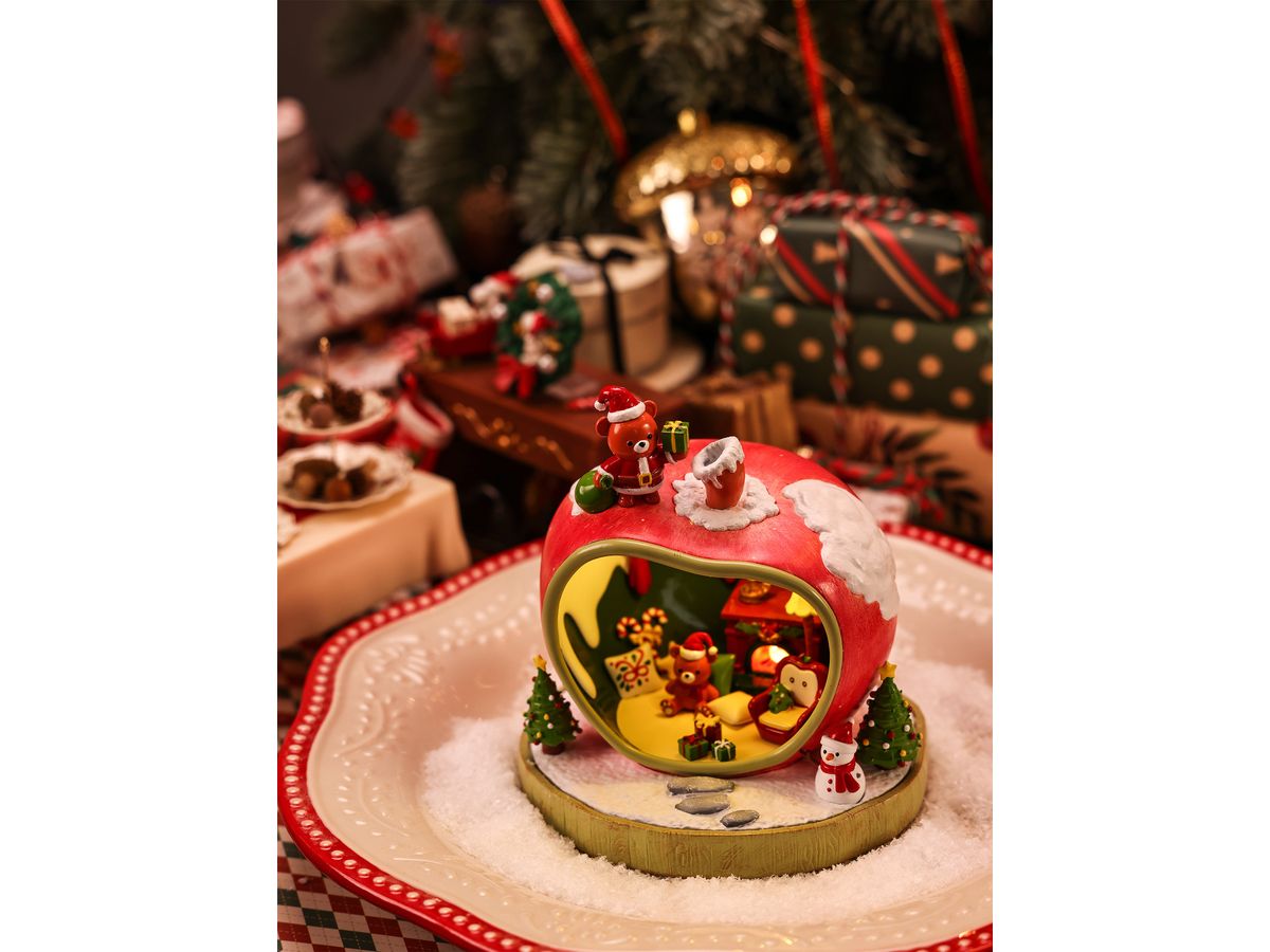 手のひらサイズのリンゴの中に、温かく、夢のような空間が広がります。