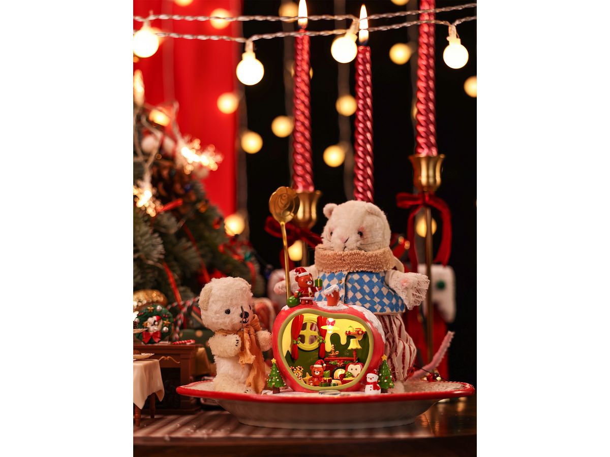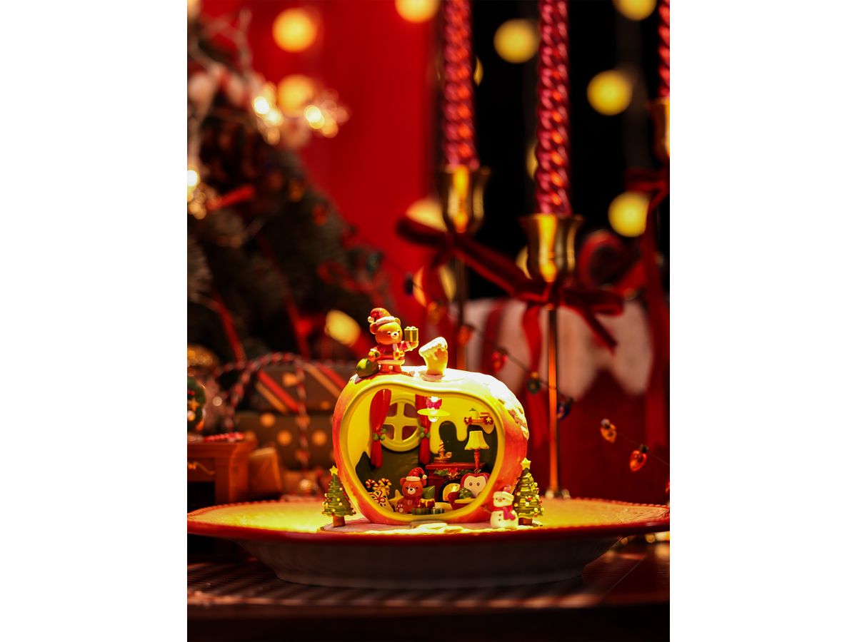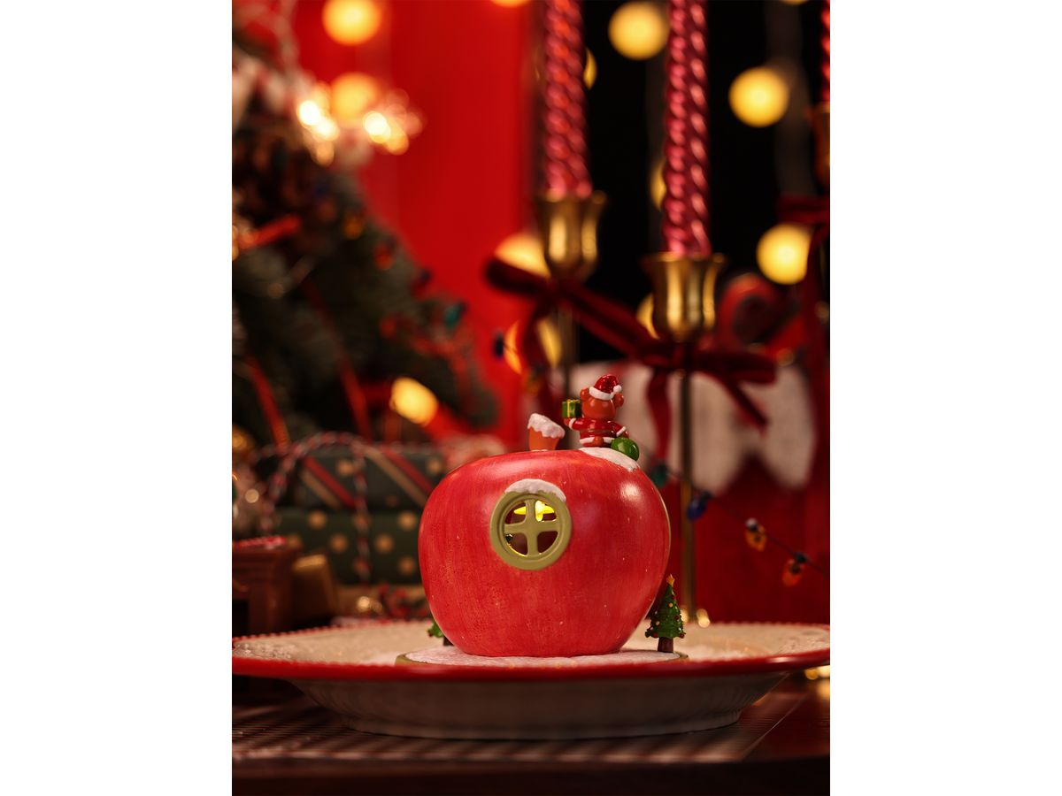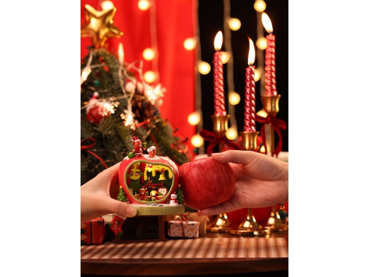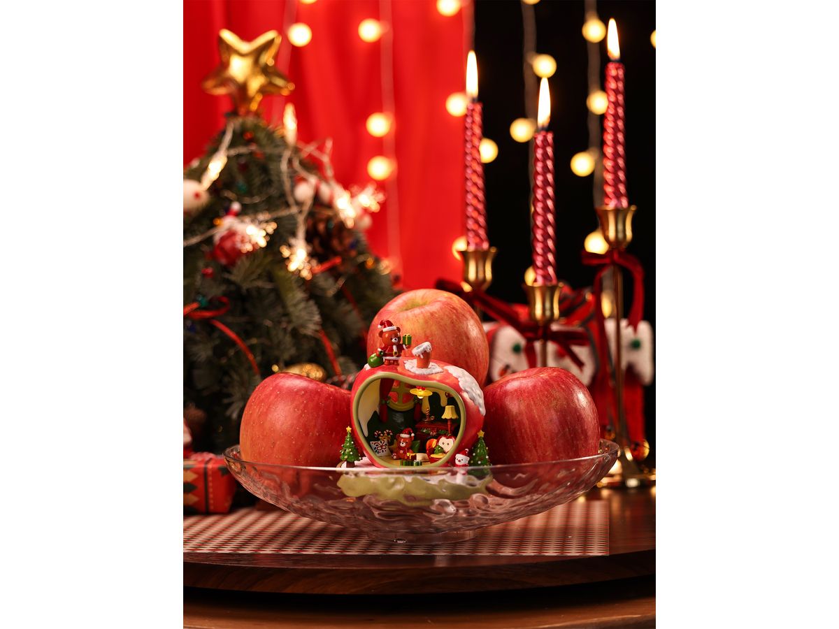 手のひらサイズのリンゴの中に、温かく、夢のような空間が広がります。