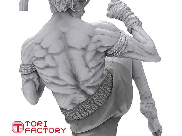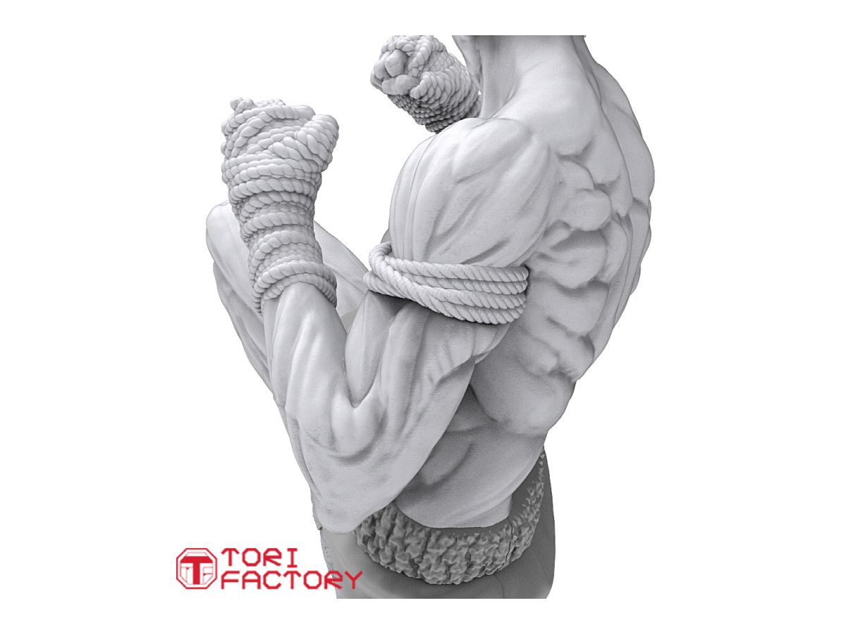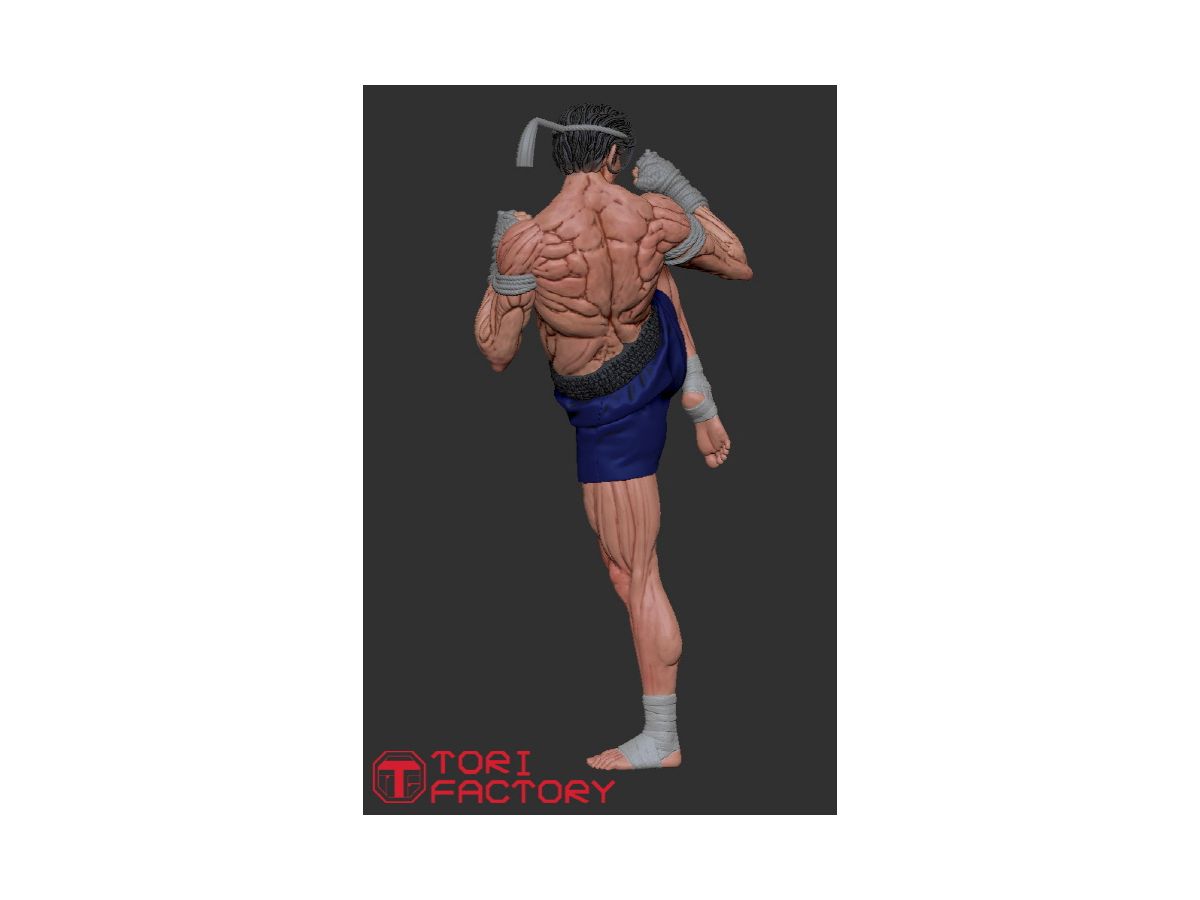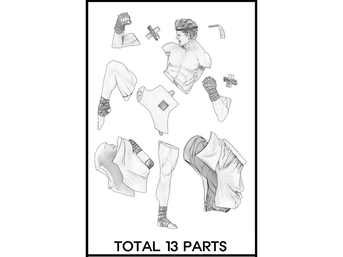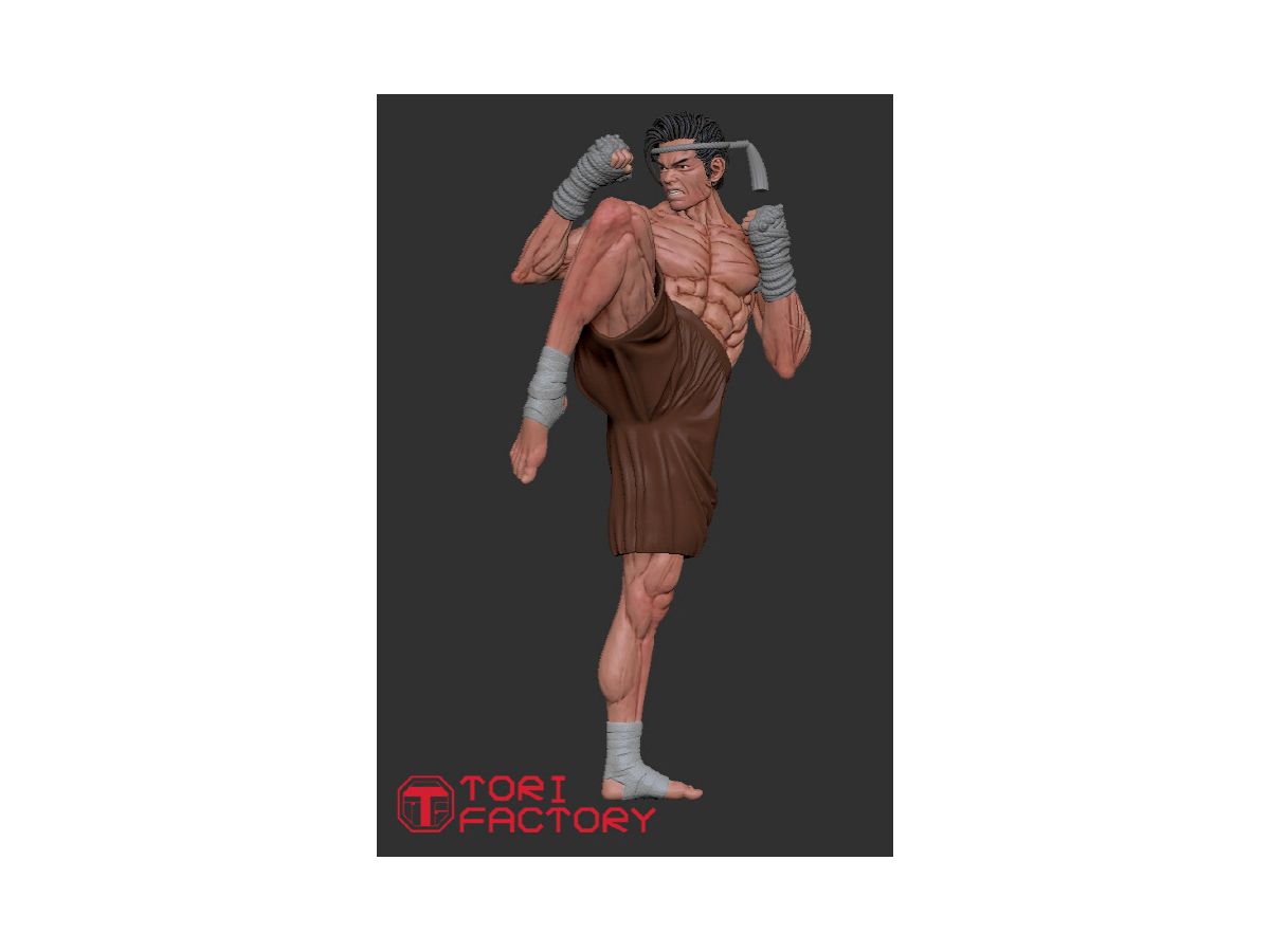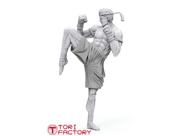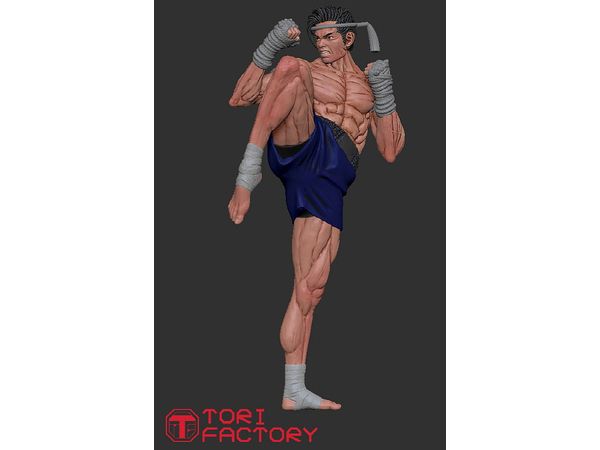 グローブでは無く荒縄を手に巻いている所から古式ムエタイ式のナックモクをモデル化していますが、路上戦士をモデルにした人気ゲームをも連想させる素晴らしい体格のフィギュアです。