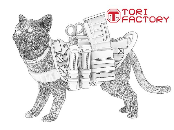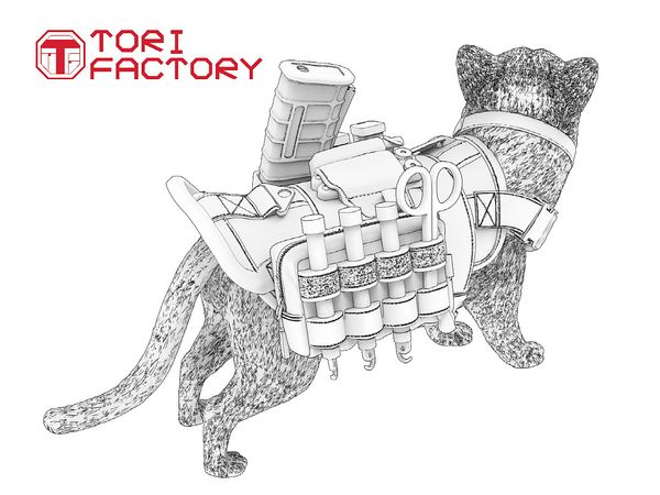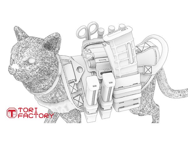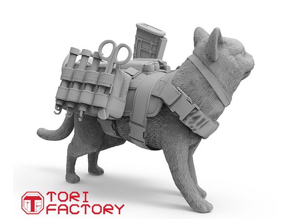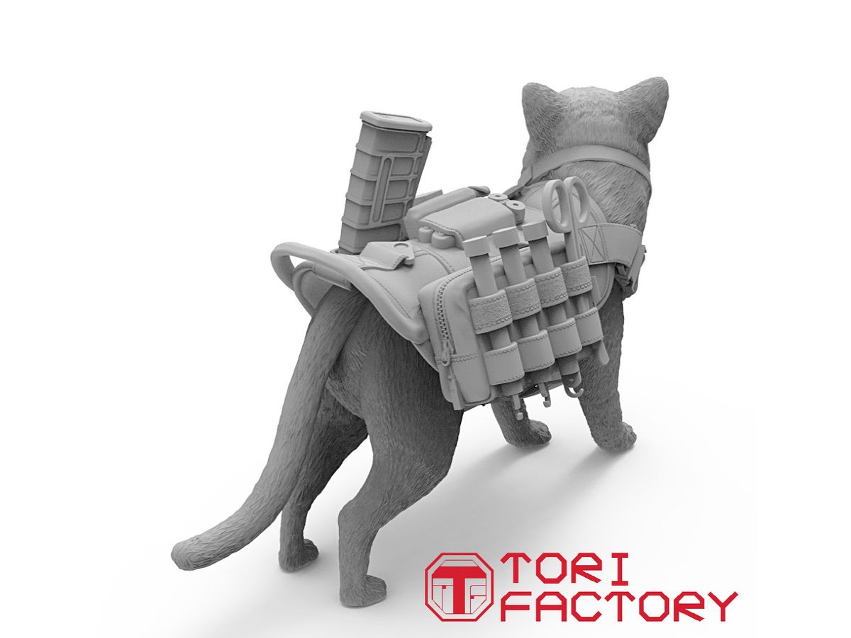 現用エリート兵士のタクティカルギアのような戦術的装備を身に付けたネコを再現したフィギュアです。